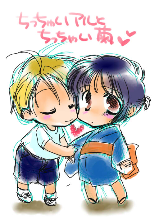初めて全部パソコンの中で描いたちびめりかとちび菊。SAI使ってみました。