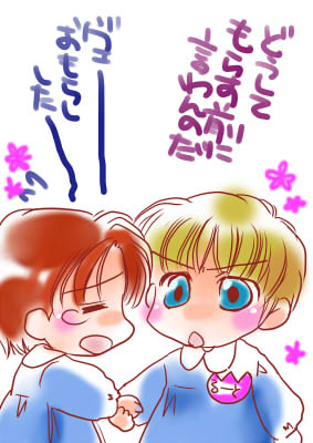 逃避なのか幼稚園設定を考えてたら(お約束)楽しくなってしまいました。お約束って楽しい!本田さんは先生です。ジャージエプロン萌!!園児のアルと恋に落ちます(年齢差…)